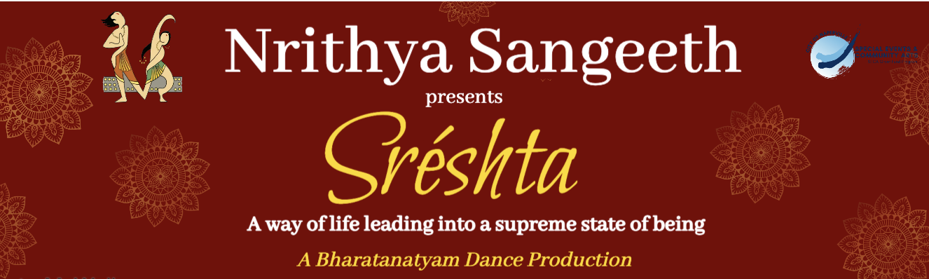 Presented by Nrithya Sangeeth, students of Smt. Sowmya Kumaran, Sreshta is a Bharatanatyam dance production that explores the pursuit of supreme excellence and the highest state of being. Through graceful choreography and powerful storytelling, Sreshta takes the audience on a transformative journey of self-discovery and fulfillment.