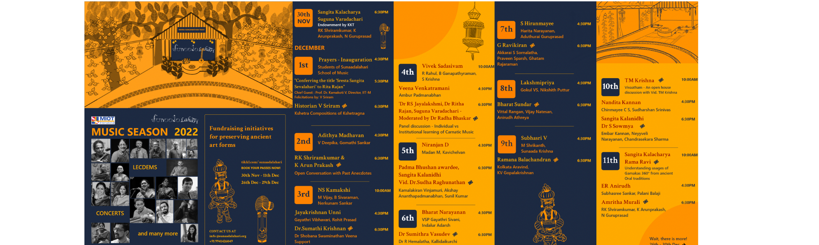 December Season Festival 2022 will feature 30+ Concerts/LecDems from Nov 30th-Dec11th & Dec26th-Dec29th. We would like to bring you the magical moments of Margazhi music festival LIVE at our garden amphitheatre with interaction sessions with Artists.